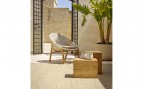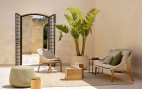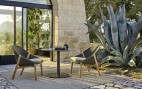 Le fauteuil bas ELIO est composé d'une structure en teck de Java et de cordes Tricord (polyoléfine) tressées. Le designer Yabu Pushelberg a créé la collection ELIO, dont le nom se réfère au dieu grec Helios, Dieu du soleil, s'inspirant du mouvement de la lumière réfléchissant sur les paysages et les objets tout au long de la journée.