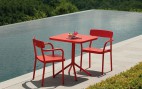 Le fauteuil repas Grace est réalisé en aluminium verni, il est proposé en 8 coloris. Il est empilable par 4.