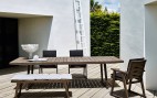 GIO, collection à l’accent contemporain classique dessinée par Antonio Citterio, est dédiée à l’art de vivre à l’extérieur. Une famille complète de canapés composables, de chaises longues, de transats, de fauteuils, de chaises et de tables en teck massif en finition spéciale antique Grey, qui confère au bois un aspect vieilli particulier avec des reflets gris argent. Les différents modules de canapés, méridiennes, chaises longues, sont tous juxtaposables pour former des assises linéaires, d’angle ou en îlot, dans une structure à base de lattes en bois sur laquelle sont insérés les cadres de dossier et d’accoudoirs tressés de rubans coloris tortora. Les sièges sont complétés par des coussins d’assise et de dossier qui rendent GIO particulièrement accueillante et confortable et offrent une combinaison de couleurs exclusives. Afin de garantir une meilleure isolation contre les intempéries, tous les rembourrages sont revêtus d’une housse en polyester avec un traitement étanche, tandis que les tissus sont certifiés pour résister aux agents atmosphériques, aux rayons UV, à l’eau chlorée et à la salinité.