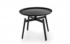 La collection Husk Outdoor comprend 2 petites tables basses en aluminium : une à trois rayons de 45 cm de diamètre disponible dans 5 couleurs, l'autre à quatre rayons de 62,5 cm de diamètre avec les versions monochromes verni blanc ou noir.