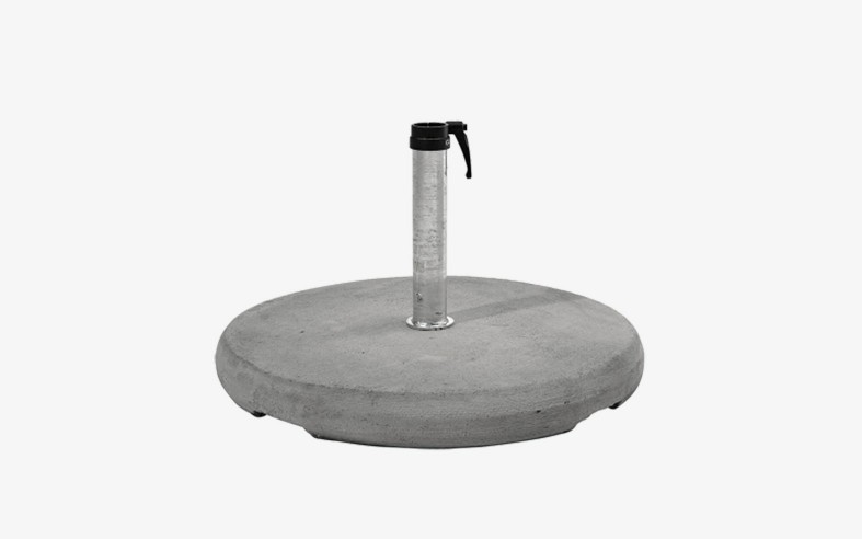 Le pied béton 55kg proposé par GLATZ est livré en deux parties (base en béton et tube de serrage) Une poignée de serrage manuelle permet de fixer le parasol sur le tube.